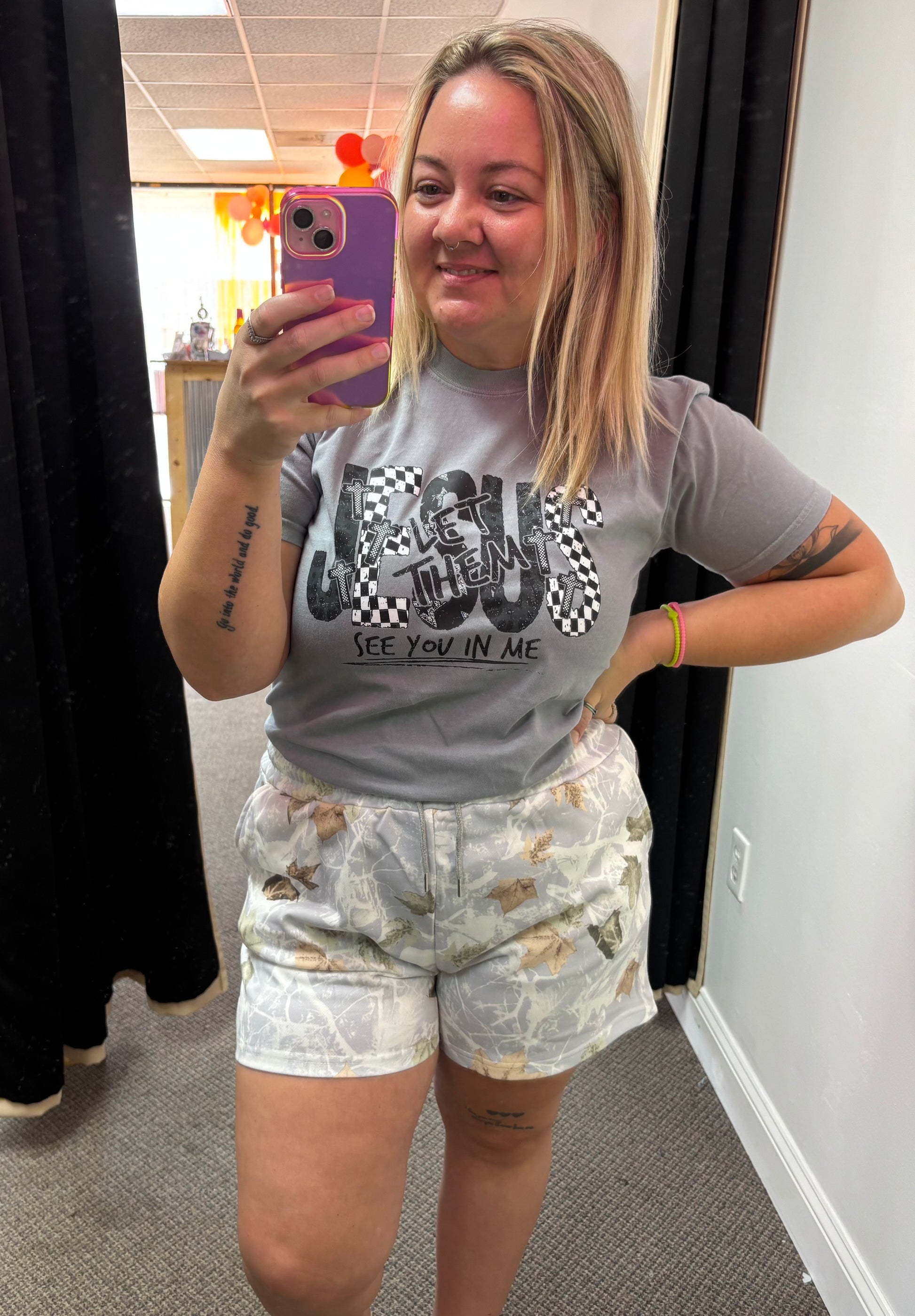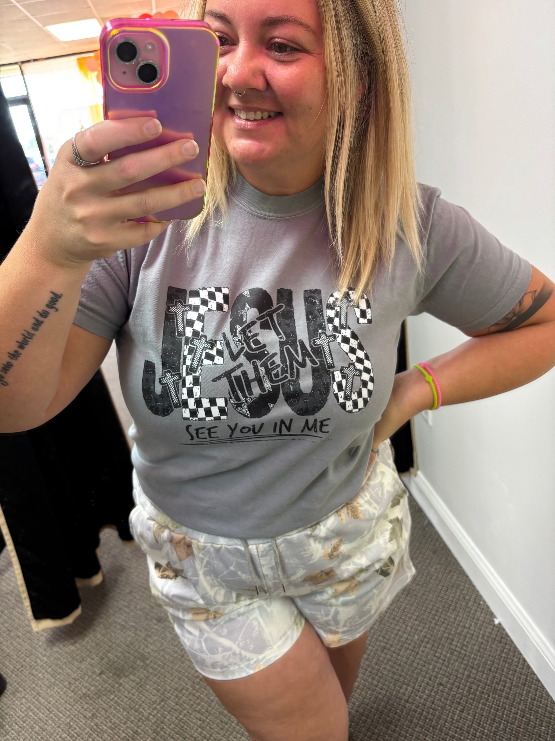 This playful "Let Them See Jesus" tee, printed on a soft Comfort Colors shirt, brings a casual vibe with a meaningful message. Perfect for showcasing your faith while staying cozy. Pair it with your favorite pants for an effortless, everyday look that spreads a little joy wherever you go.